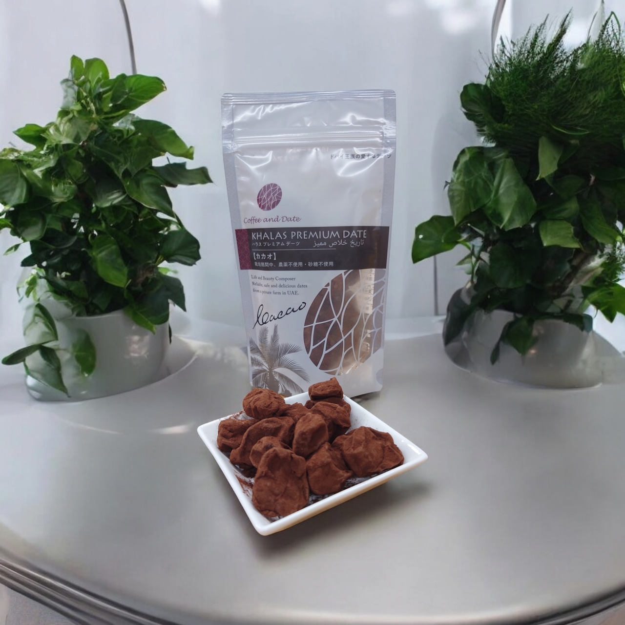 ハラス・プレミアム・デーツに、厳選したフランス産の高級なカカオパウダーをまとわせました。